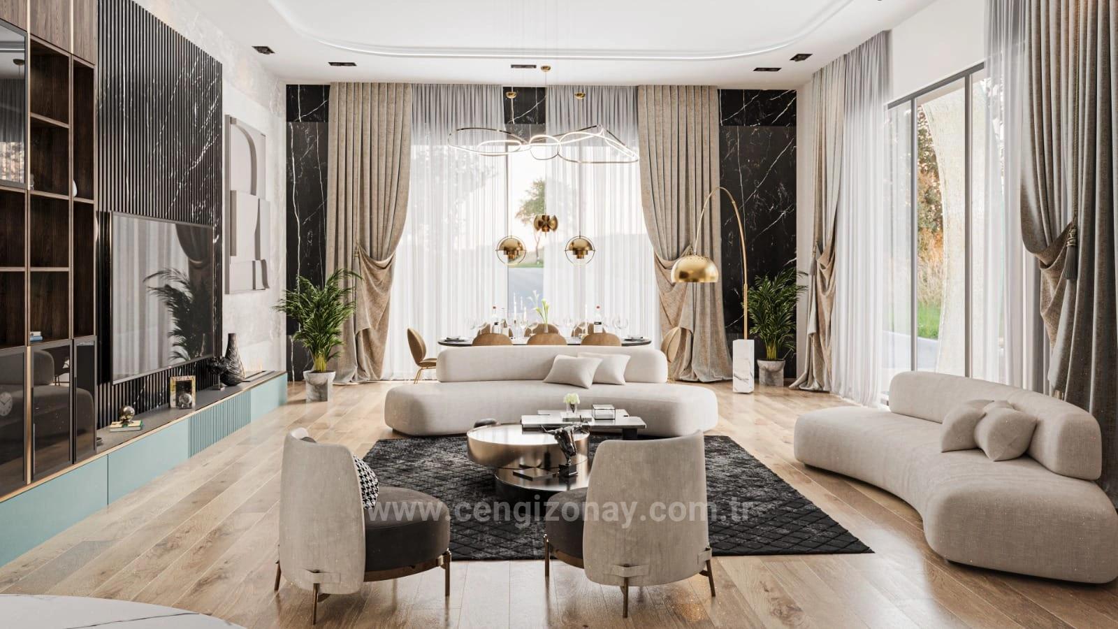 ● Jede Villa verfügt über ein eigenes **Türkisches Bad, einen Pool, ein Arbeitszimmer, eine Waschküche, einen Fitnessraum und Parkplätze für 2 Autos**.